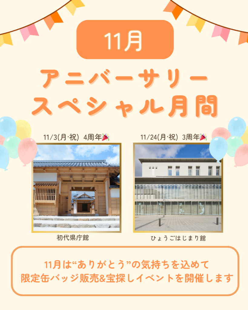 11月で初代県庁館は4周年、ひょうごはじまり館は3周年を迎えます。