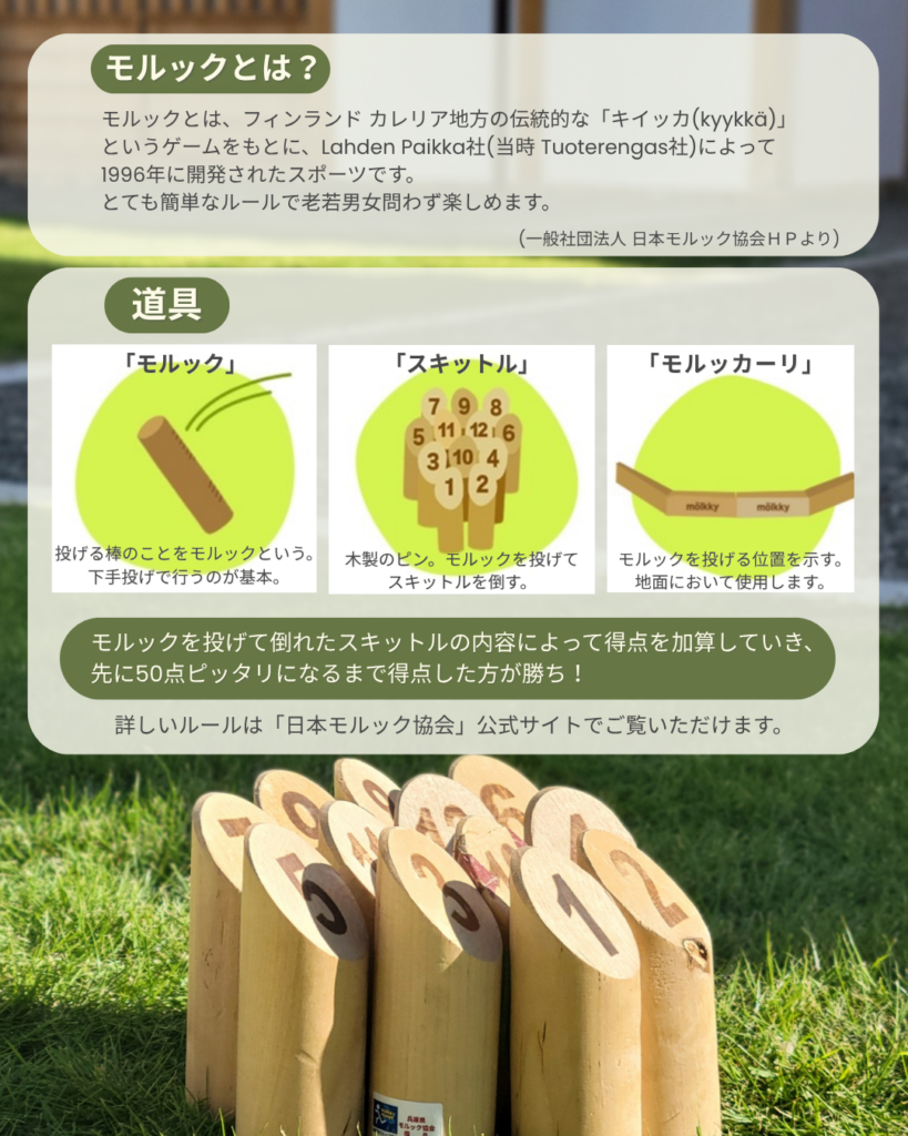 詳しい遊び方については、一般社団法人日本モルック協会のページをご覧ください。