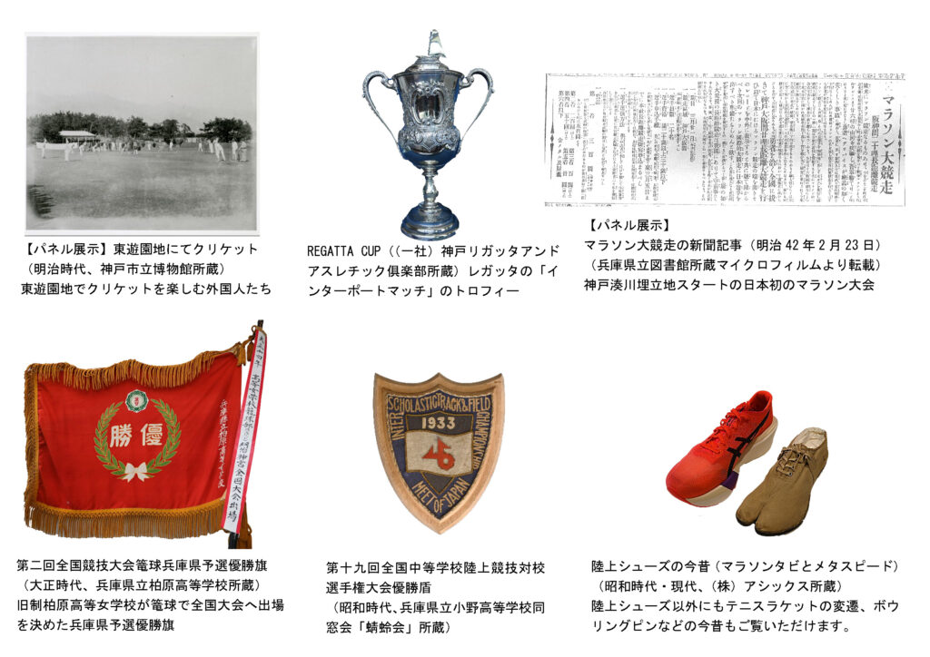 本展覧会では、明治・大正・昭和初期のスポーツ史を県内に残る用具や記念品などからたどるとともに、その歴史に紡がれた先にいる現代の“ひょうごスポーツ人”を紹介します。
